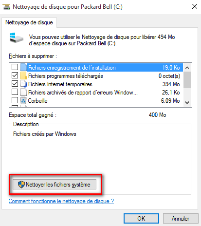 cliquez sans rien changer sur "Nettoyer les fichiers système".
